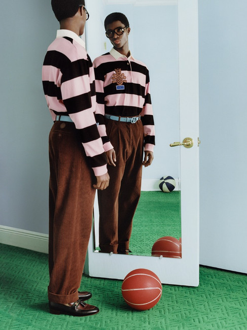 Mixing collegiate and streetwear aesthetics in a palette of pastels complemented by deeper blues and greens, the Gucci Pineapple collection presents a light-hearted mood. Sneakers and leather accessories complement the collection