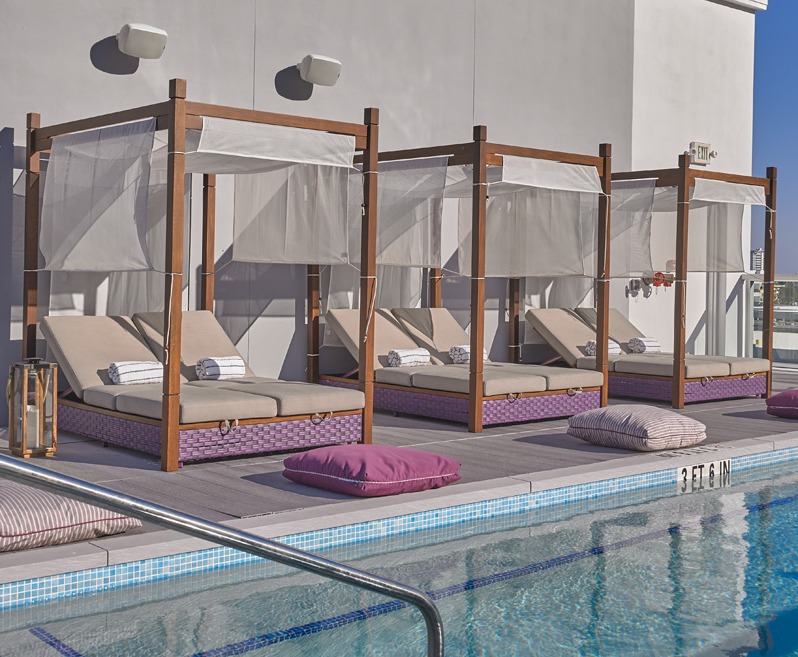 Soak up the sun year-round on ABAE’s gleaming rooftop. The rooftop pool and sundeck is a pristine retreat for guests looking for seclusion. It is elevated from the bustling streets of South Beach and nestled in lush landscaping for privacy. A sultry soundtrack emanates from the pool’s underwater speakers, while high-pressure jets provide a stress-relieving hydromassage.