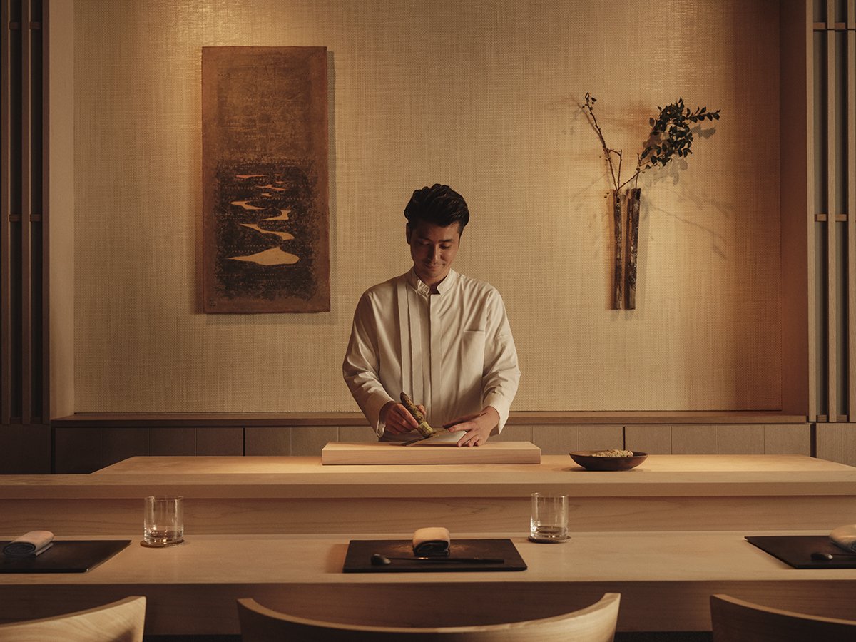 At Aman Tokyo, guests encounter this philosophy through the refined rituals of omakase dining, where chefs tailor multi-course menus in response to guests’ preferences and seasonal ingredients.