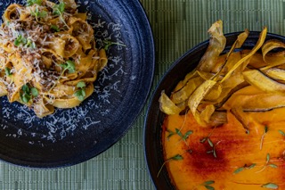 Hearty mains like the 16-hour Short Rib Ragu with egg pappardelle and grana padano bring comfort and sophistication, while the Camarones al Ajillo Pizza adds a coastal flair with garlic butter shrimp, sweet corn and banana pepper on a stone oven-baked crust.