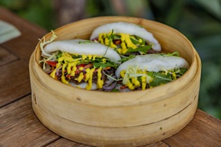 Other standouts include the Yellow Shakshuka with poached eggs and mango over roasted yellow tomato and peppers, and the Guava Short Rib Bao Buns, where Latin and Asian flavors collide in a slow-cooked, sweet-savory delight. And if you’re after something fresh from the garden, the Verde Eggplant, stuffed and topped with za’atar yogurt, masala chickpeas and vibrant herbs, is an edible masterpiece.
