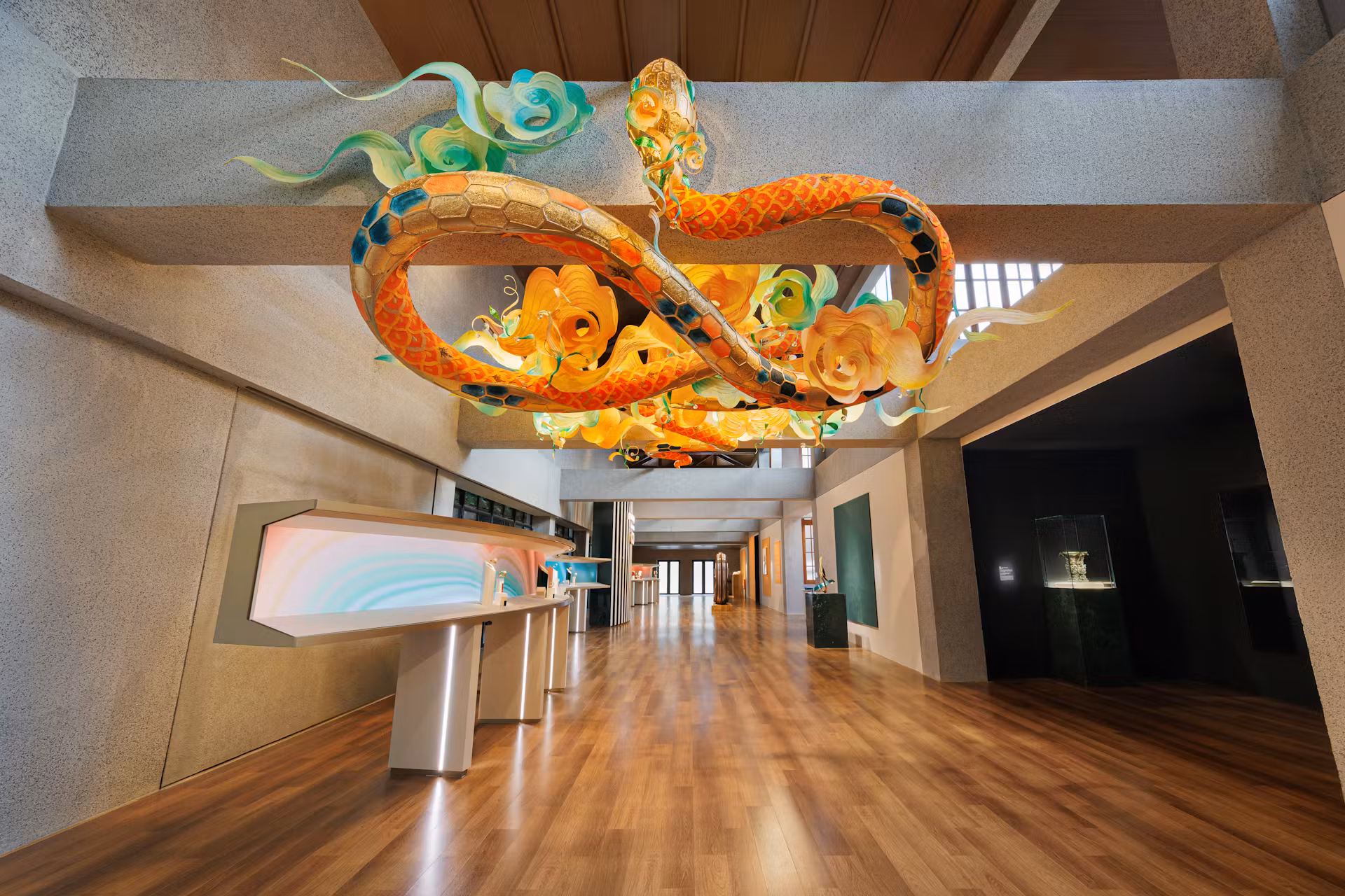 Featuring 28 artworks by 19 Chinese and international artists – 11 of them created exclusively for the occasion – the exhibition is an invitation to explore the captivating meanings and interpretations of the snake through art, history and contemporary permutations. The event included a worldwide premiere for a work entitled “Infinito: AI Data Sculpture” by Refik Anadol, a 3D sculpture set in the center of a 360-degree mirrored room.