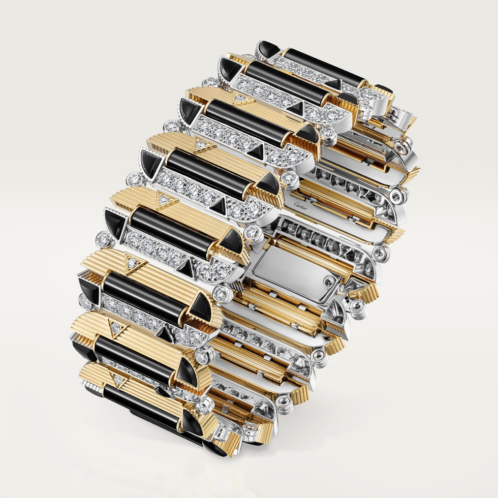 Cartier has introduced the Géométrie & Contrastes bracelet, a design that reflects the house’s early 20th-century shift toward geometric forms and material contrast.