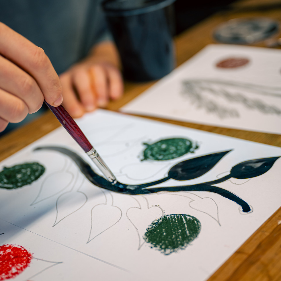 Mediterranean Scrub: A Journey Between Memory and Ecological Transformation weaves together memory, identity, and landscape. The external façade welcomes visitors with a stylized olive branch, like a portal leading to an immersive journey into the heart of the Mediterranean. Inside, a series of suspended flags – large floating canvases that measure approximately nine by six feet – depict Mediterranean wild flora with black silhouettes that seem to dance in memory. Borage, strawberry tree, poppy, arugula, and nettle plants represent fragments of life and culture and the artist’s childhood memories in Italy. Iacurci uses humble materials such as paints and light textiles to echo the fragility and strength of the Mediterranean.