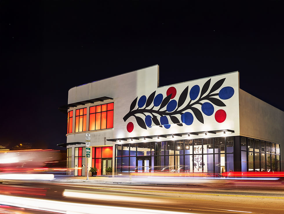 An olive branch from Agostino Iacurci’s “Mediterranean Scrub“ on the Natuzzi Miami façade