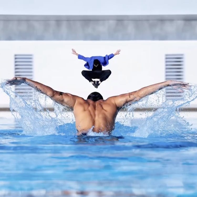 His 16 photos feature a game of mirrors between athletes, their training environment and distinctive cultural locations. Constantly seeking an unconventional approach, just like the photos of his gravity-defying jumps in which he appears to be levitating, Mathieu Forget captures athletes in their element while creating a vanishing point. The images in the series center on this approach, celebrating “French elegance in movement”.