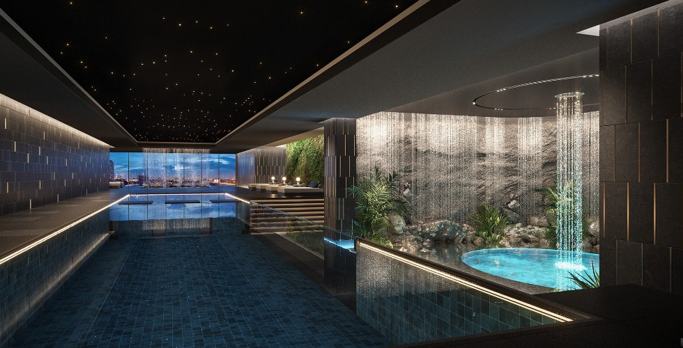 The luxury residence (e11evenresidences.com) offers an outdoor 2,000 sq-foot pool of fully furnished cabanas with flat-screen TVs and temperature-controlled plunge pools. Images courtesy of ArX.