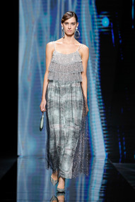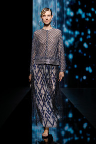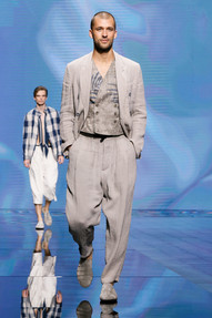 For the Spring/Summer 2021 collection, silhouettes, for both men and women, are essential, soft, fluid: a blend of pure lines and neutral colors —grey, beige, black, blue— that light up with occasional geometries, swarming with rhythmic patterns, following an idea of ton sur ton that is real but also metaphorical, but never prevails over the rest. What emerges is the personality of a woman and a man who are free from aesthetic constraints, careful instead to express themselves through what they wear. Whether everything is matte or shimmering, it is the sense of measure that keeps asserting itself, overcoming time.