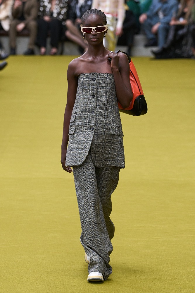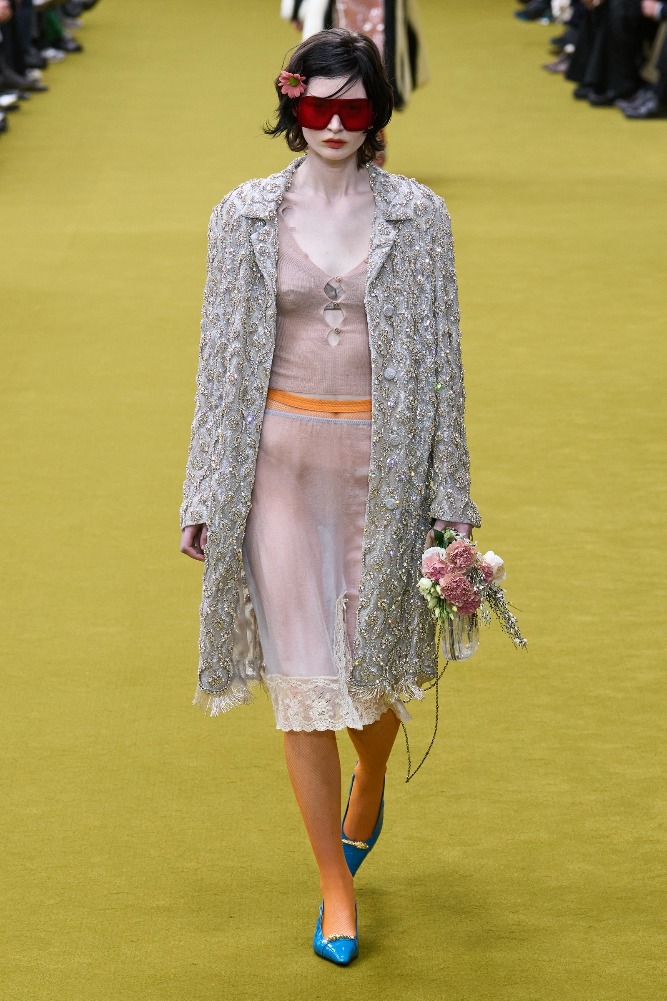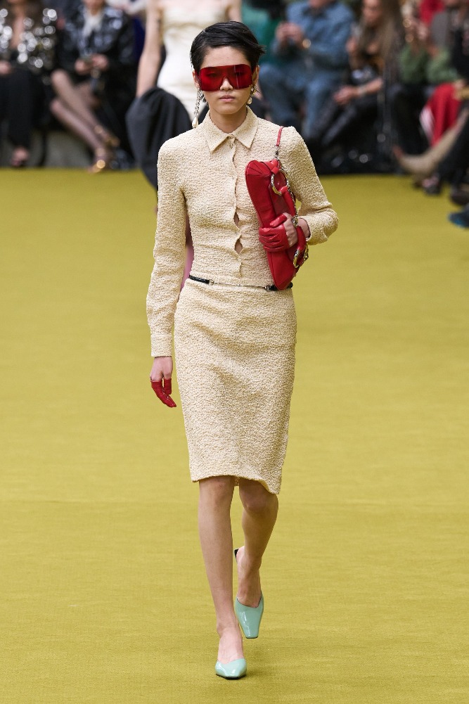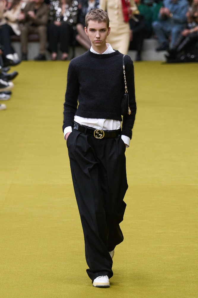 Gucci’s new creative director, Sabato De Sarno, will debut his first collection in Spring 2024. Meanwhile, the Gucci studio has created an in-between collection for the transitional period between De Sarno’s opening collection and Alessandro Michele’s final collection. The collection was presented in a stripped-down Gucci hub, with two sunken circles representing the collaborative circularity of Gucci’s creative community.