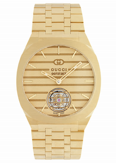 Idris Elba wore a GUCCI 25H Tourbillon with 40 mm 18kt yellow gold multi layered case, golden brass dial with GG727.25.T caliber engraving and tourbillon at 6 o’clock while attending the "BEAST" UK Special Screening at Hackney Picturehouse on August 24, 2022 in London, England.