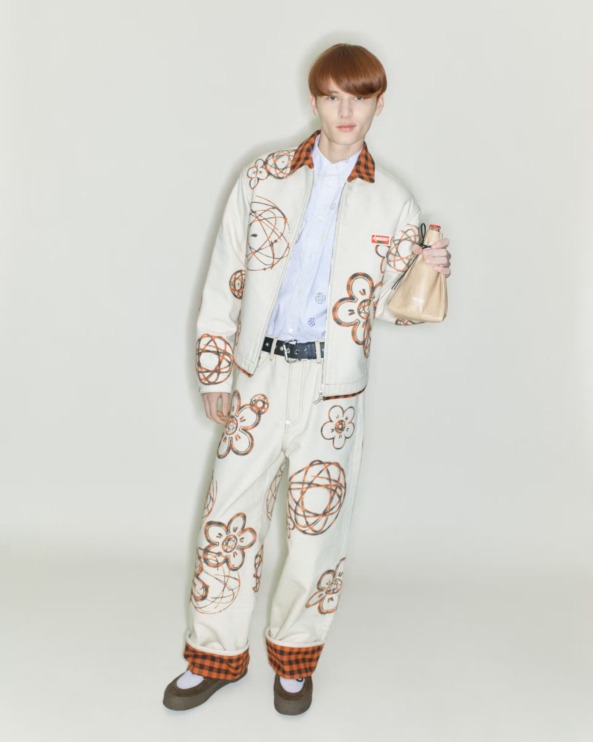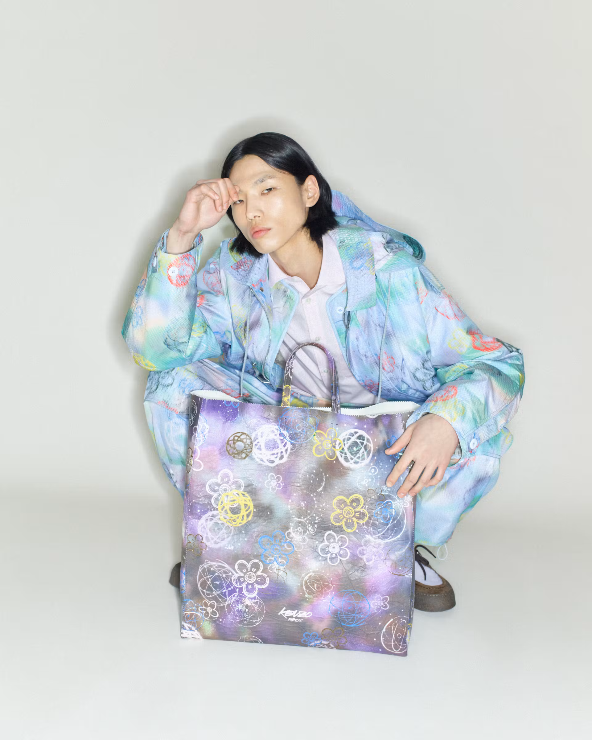 Celebrating a lifelong creative friendship, Nigo invited American artist Futura 2000 to collaborate on the collection. Together, they fuse the artist’s signature stylized atom motif and KENZO’s emblematic boke flower, illustrating pieces in ripstop, nylon and embroidered denim.