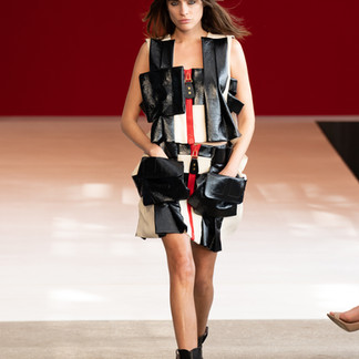Designed by Louis Vuitton Artistic Director Nicolas Ghesquière, the Spring-Summer 2023 collection changes the play of proportions using the Maison’s signatures, bringing the infinitely large and infinitely small together in one silhouette. This new balance is found in the collection’s scale: zippers and snaps are oversized, clasps become belt buckles, and a scrap of leather is turned into an outfit, among other reinterpretations. The collection is a stylistic exercise that re-evaluates the proportions of clothing and accessories, unsettling the codes of femininity. Each piece highlights the details and honors the DNA of the house with references like locks, clasps and trunk corner pieces-all custodians of a narrative that endures.