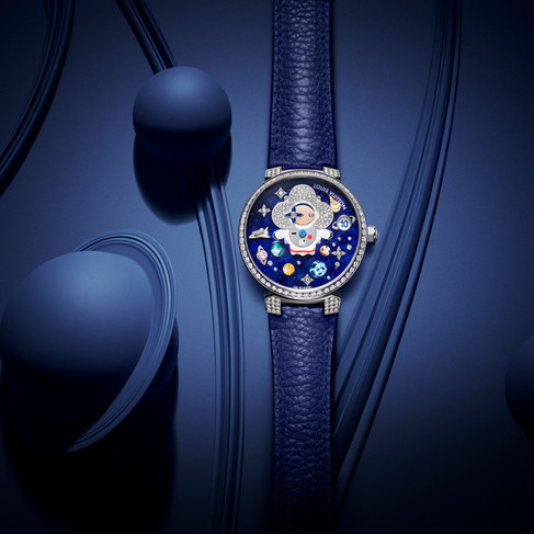 Embodying the spirit of adventure, the Tambour Slim Vivienne Jumping Hours collection features Louis Vuitton’s beloved mascot, Vivienne, embarking on captivating journeys. From Sakura Vivienne amid Japan’s cherry blossoms to Astronaut Vivienne exploring the cosmos, these timepieces blend whimsy with technical precision, showcasing Louis Vuitton’s mastery of watchmaking techniques.