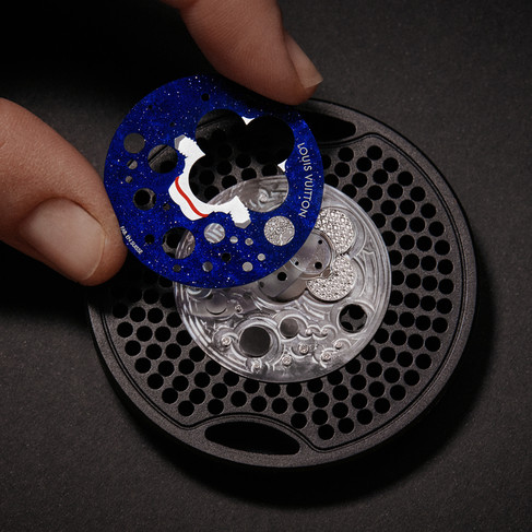 Louis Vuitton pioneered the revival of plique-à-jour enamel in the 21st century with the Voyager Flying Tourbillon. The dial, reminiscent of a modern stained-glass window, reveals the intricate flying tourbillon movement. Through meticulous collaboration with master enamellers, Louis Vuitton breathes new life into this rare and complex technique, underscoring its commitment to preserving heritage craftsmanship.