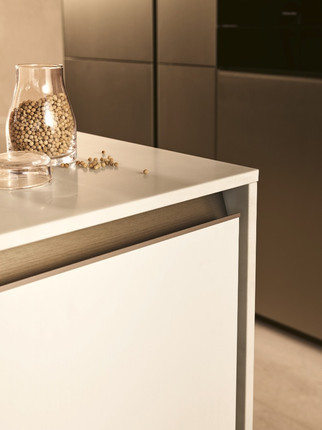 The result is a kitchen system that combines a very high operational capacity with a contemporary look, to be customized with a very wide range of materials and finishes.