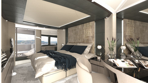 Infinity is a proposal conceived by Rossinavi’s COO Federico Rossi with the objective to create a boat concept that starts from a simple sharp line that connects two windows; one looking out into the horizon and the other one pointing towards the bow into the beach club and owner’s entertaining area.