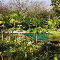 This intimate, consciously-designed resort features lush narrow pathways winding all throughout its property, speckled with exotic birds such as the white-throated magpie-jay, hummingbirds, and pelicans, all leading out to a spacious beachfront area, inviting guests to come out and play or relax and enjoy captivating sunsets over the ocean.