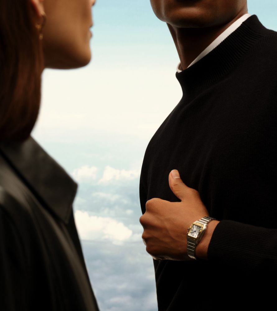 This captures the essence of the Santos de Cartier watch, an icon in tune with the pioneering spirit of Alberto Santos-Dumont. Created for him in 1904, it cultivates the same sense of innovation as the aviator. At the time, it was the first modern watch designed to be worn on the wrist. The visible screws of this square watch, traditionally hidden in watchmaking, would become an aesthetic code of the collection.