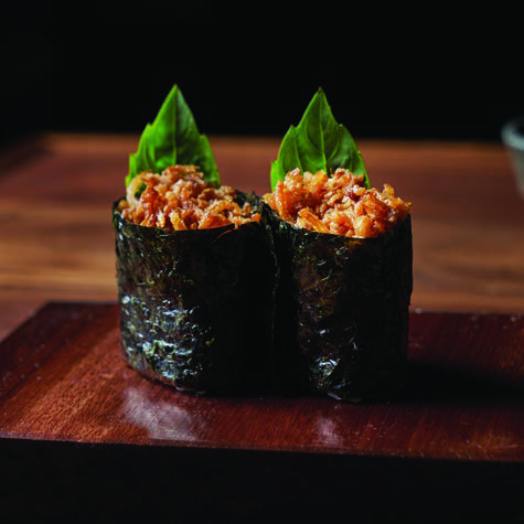 The two most popular sushi rolls in America are: the California roll and the Spicy Tuna roll. California because it’s delicious. It’s the perfect combination of cucumber for texture, avocado for creaminess and a little fat, and crab for sweetness. California rolls are great. On the other hand, spicy tuna rolls come from sushi chefs in America trying to get rid of their older tuna with spicy mayonnaise. I would eat 1,001 things at a sushi bar other than a spicy tuna roll.