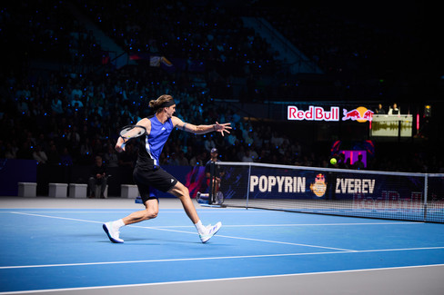 After Zverev took the first final set, Popyrin - who won the Canadian Open in August to land his third ATP Tour title - countered to take the second and pulled ahead 4-1 in the third only for Zverev to unleash three aces in a row to earn the first ever successful Red Bull BassLine title defence in the fifth edition of the innovative tennis tournament.